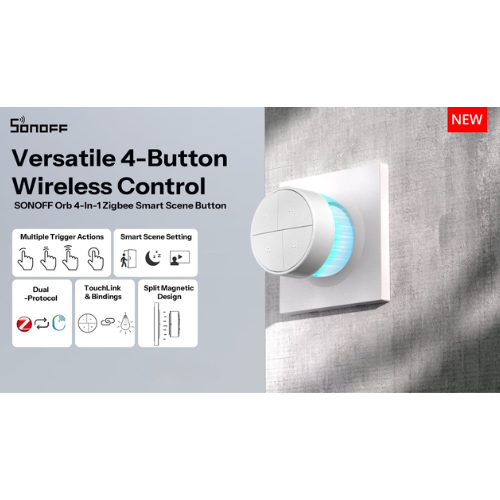 Take your smart home to the next level with the SONOFF 4 Button Scene Controller (Zigbee) — a sleek, reliable wireless controller that lets you trigger scenes, routines, and automations with intuitive button presses.